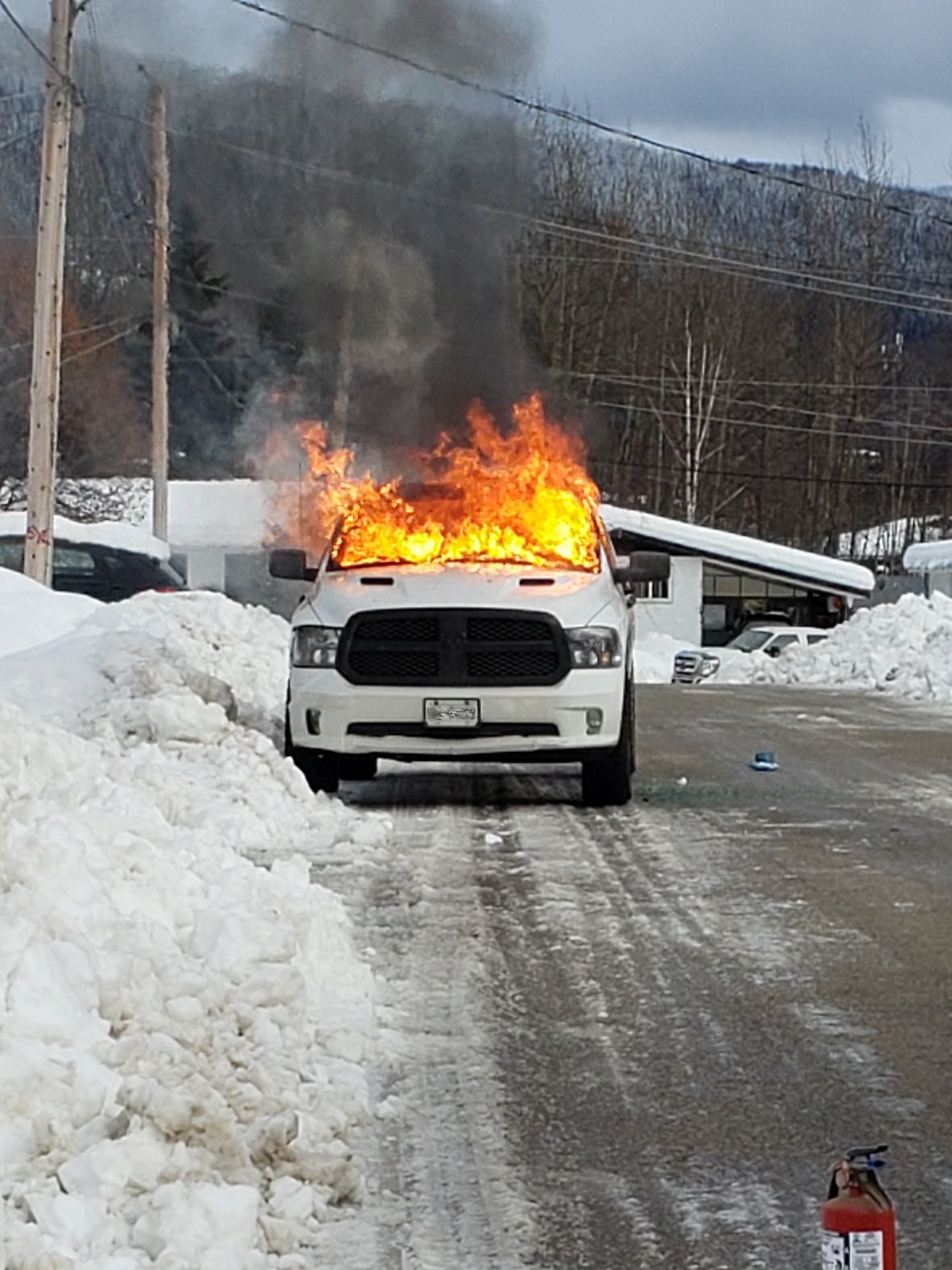 Jackson said, “The fire started on the driver’s side and then spread throughout the cab. [We heard] huge bangs as the air bags blew. The firefighters showed up pretty quickly. It was very icy, but they did great.”