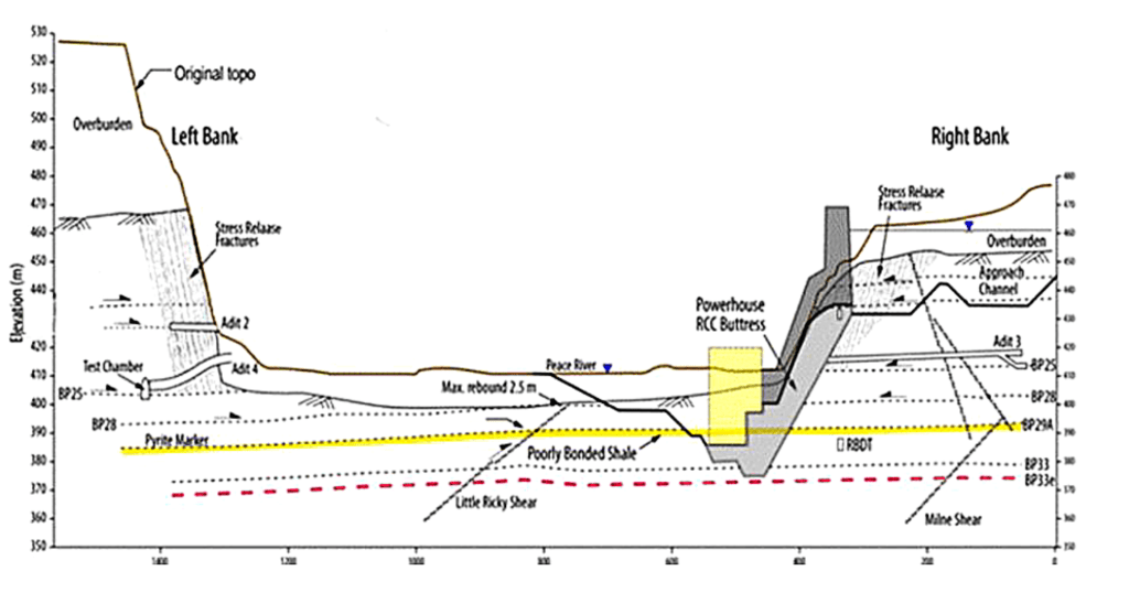 “Bedding plane shears below this elevation were present but there was no evidence of continuity, and consequently, there was no evidence that their presence and shear resistance would impact the design”
