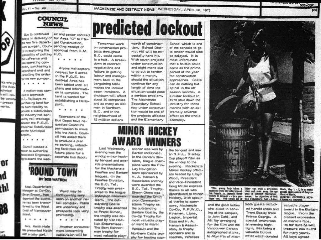 Mackenzie and District News April 26, 1972 – Front pageMackenzie and District News April 26, 1972 – Page 2Mackenzie and District News April 26, 1972Mackenzie and District News April 26, 1972