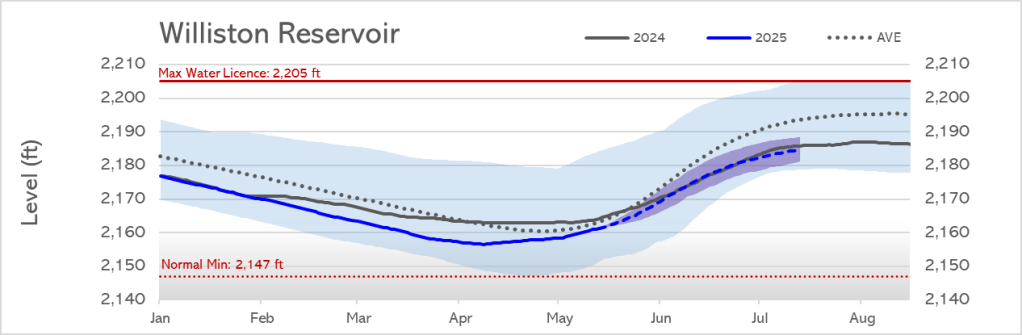 For current Williston Reservoir levels, visit BC Hydro’s website at: http://www.bchydro.com/info/res_hydromet/data/lst.txt
